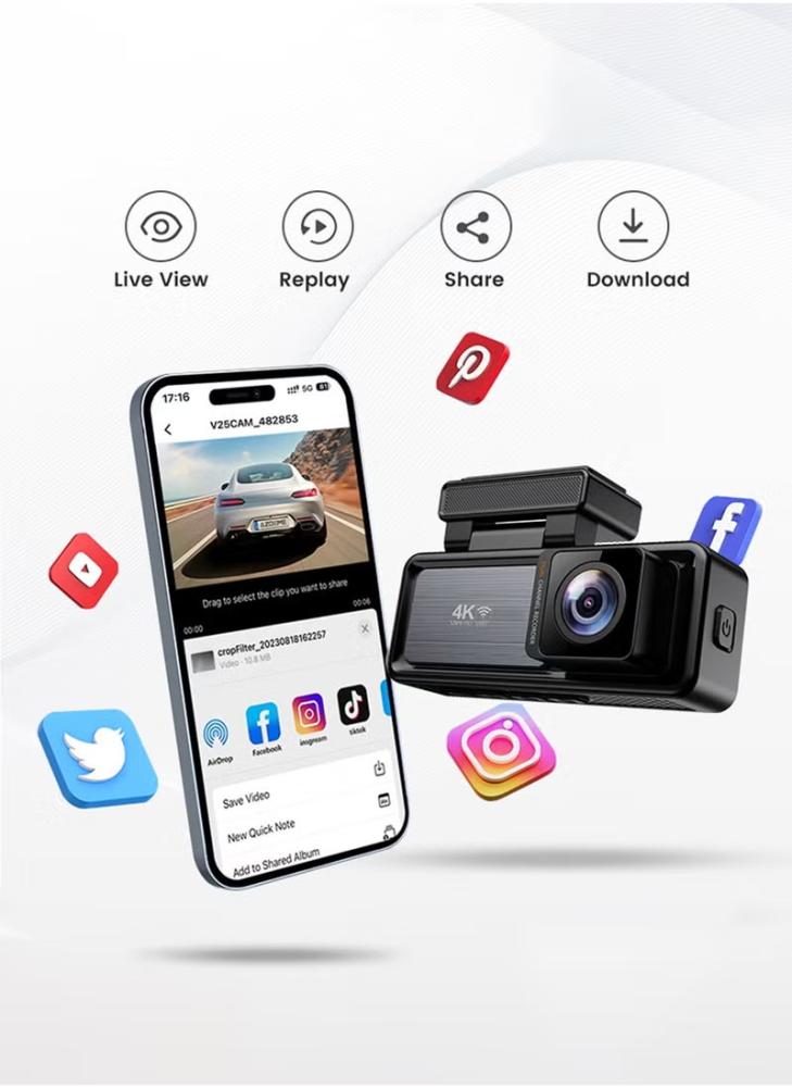 • كاميرا Dash Cam لكاميرا Dash Cam بدقة 4K Ultra HD |4K Ultra HD:التقط لقطات واضحة للغاية مع الكاميرا الأمامية بدقة 4K Ultra HD، مما يضمن تسجيل كل التفاصيل.