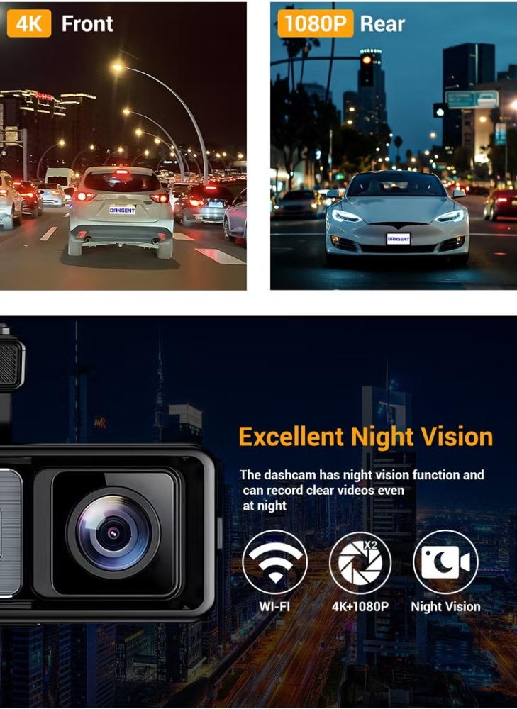داش كام كاميرا أمامية 4K كاميرا خلفية 1080P للسيارة بدقة 4K فائقة الوضوح 3.2 بوصة مع ميزة الرؤية الليلية
