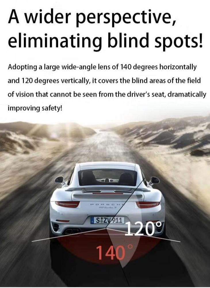 مع زاوية عريضة 140 بوصة تقلل من النقاط العمياء وتمنحك رؤية أوسع لمحيطك. تم تصميم الكاميرا لتكون مقاومة للماء والصدمات لضمان أداء موثوق به حتى في الظروف الجوية القاسية. تعمل في درجات حرارة قصوى تتراوح من -4 درجة فهرنهايت إلى 176 درجة فهرنهايت، مما يجعلها مثالية لجميع الظروف المناخية.